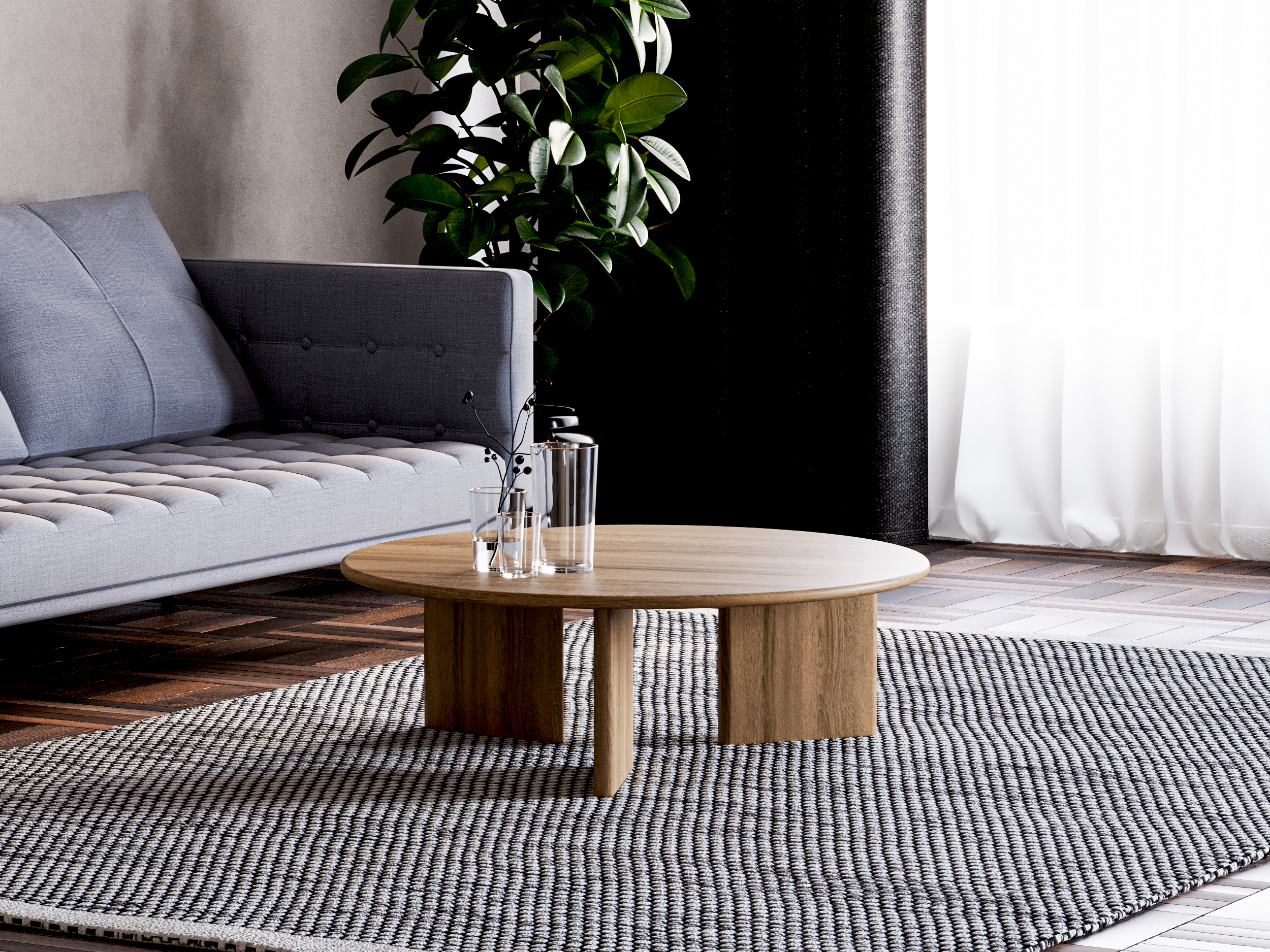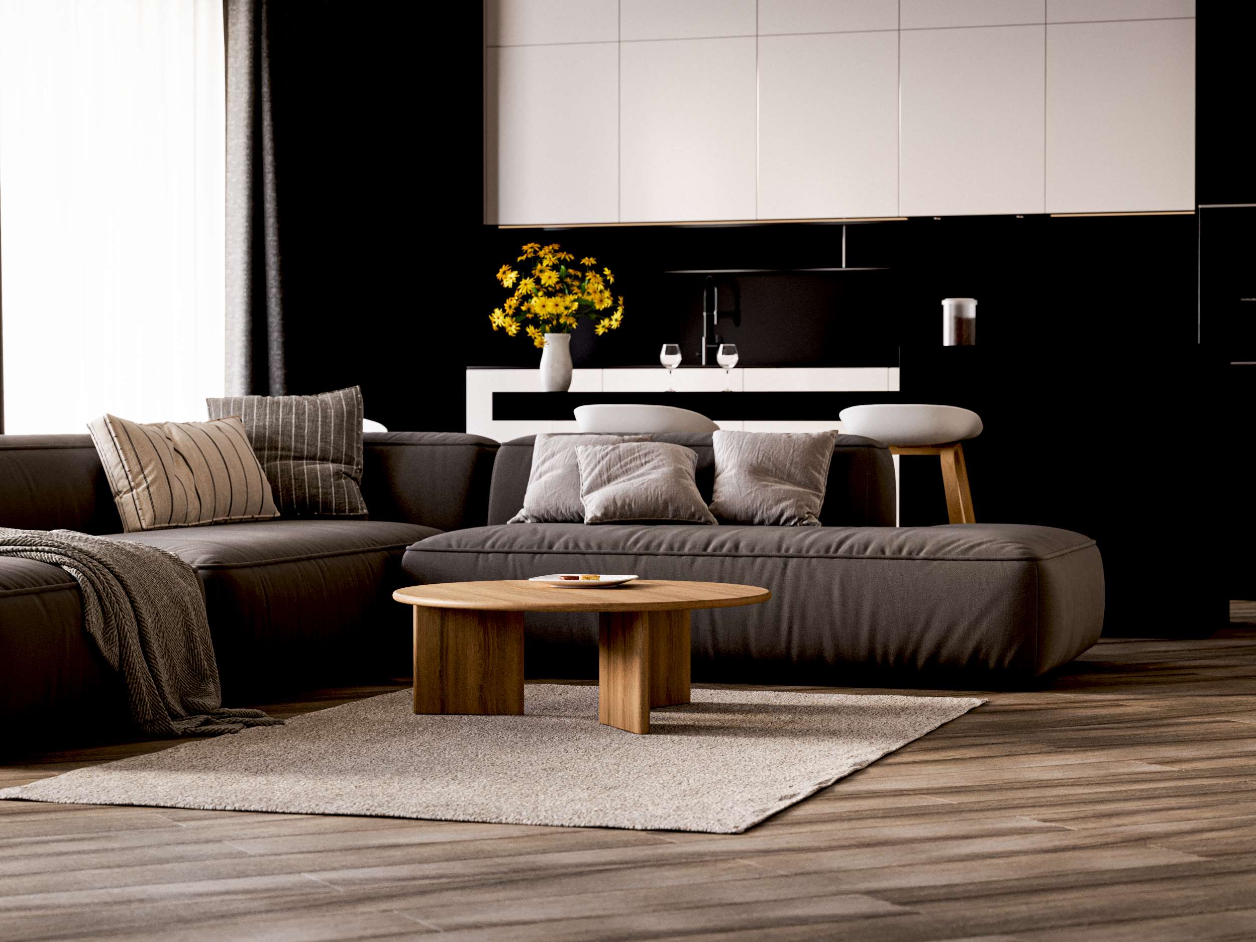 To make the natural wood of your table in the living room look great, we recommend: